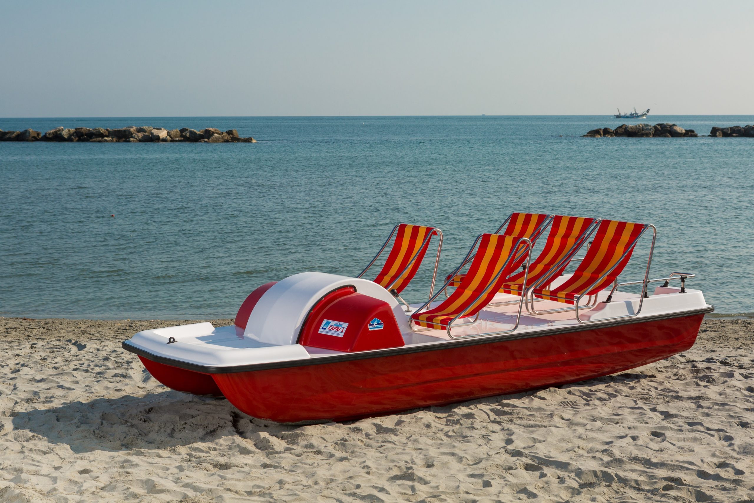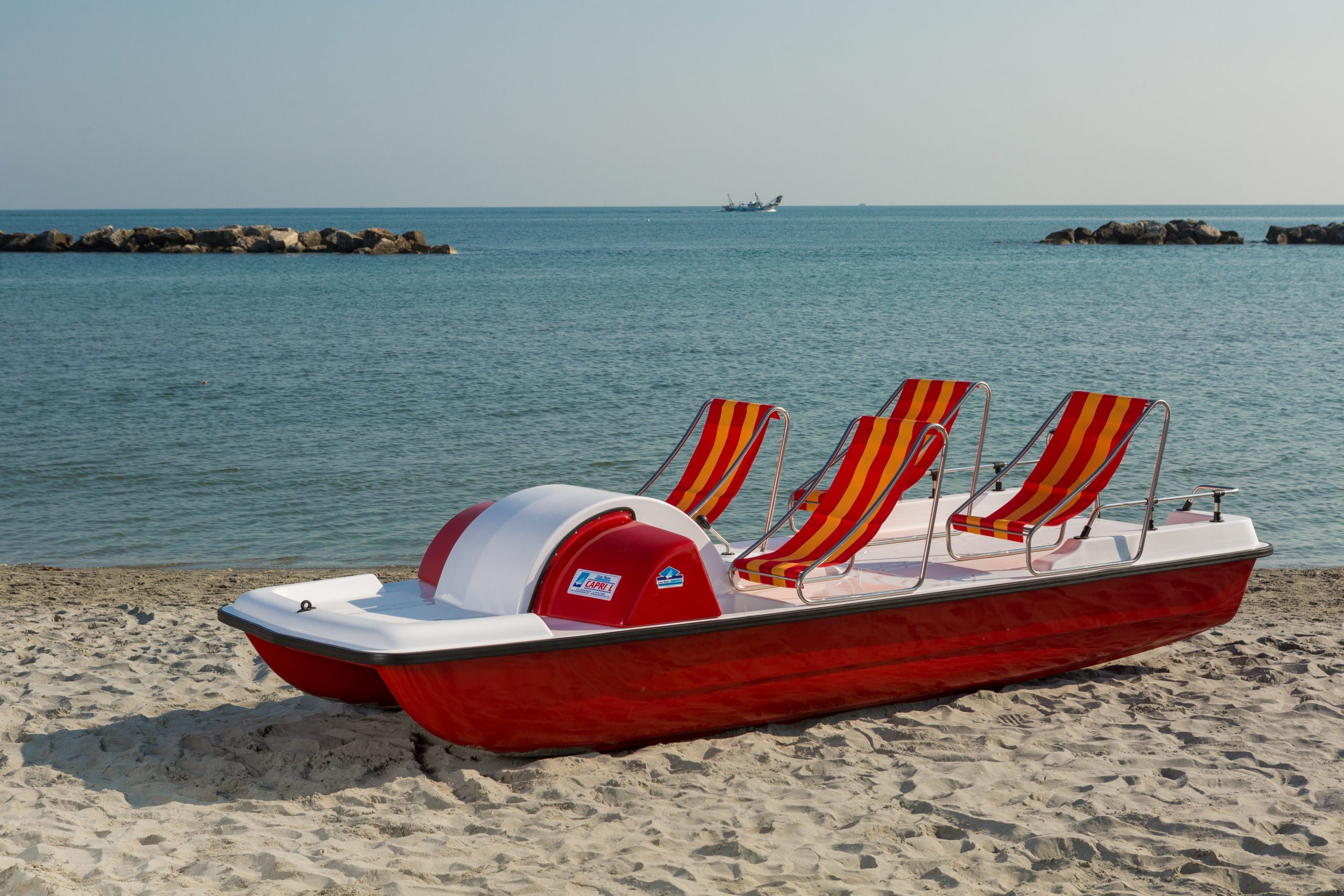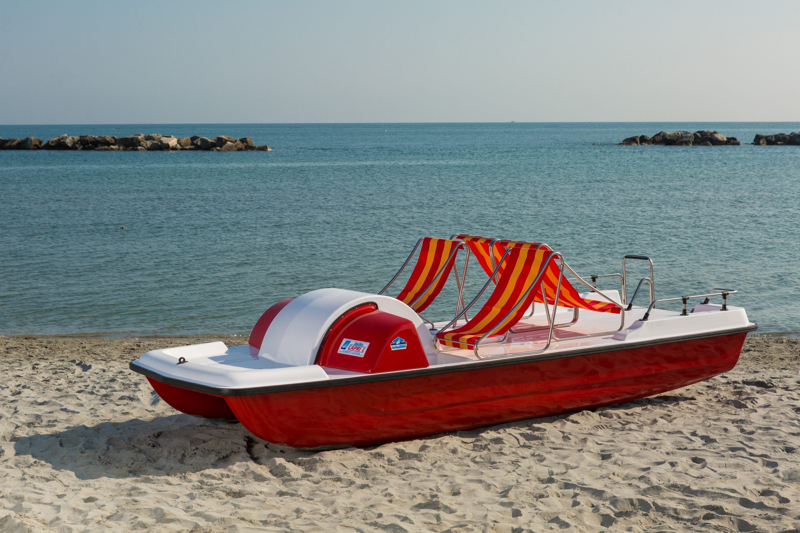 With all the features of Capri Formula, but more compact, this is the ideal pedalo for smaller spaces and beaches. Despite the smaller size, it can be fitted with a large slide at the bow for guaranteed fun....